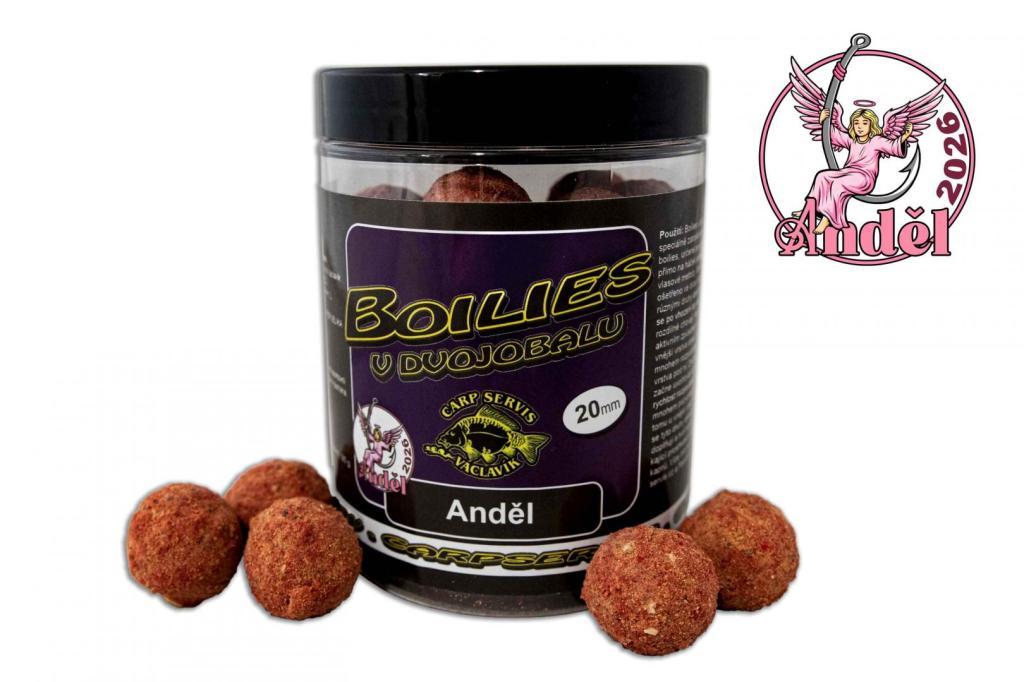 Anděl - vzniká v potřebě vyplnit prázdný prostor v naší nabídce speciálních nástrah. Anděl je jedinečný z hlediska našeho portfolia, obsahem nutričních komponentů na bázi krillu. Ač na první pohled, se může zdát, že je skutečnost jiná, pravdou zůstává překypující atraktivita. V andělovi můžete najít, jak je u nás již zvykem, celou řadu přírodních materiálů, včetně zásadních pachových silic. Anděl je sladkoživočišný s pikantní tečkou. Další neméně důležitou vlastností je intenzivní rozpustnost. Pro fanoušky nástrah CSV, může být příjemným zpestřením, neboť rozpustnost je v našem žebříčku opravdu nadprůměrná. Tedy, Anděl je vhodný především pro rychlé způsoby lovu, pro lov ve studené vodě a při krátkých vycházkách. Na revírech s množstvím drobné ryby, jej nedoporučujeme.