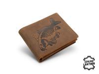 Stylová kožená peněženka vylepšená klasickým motivem kapra, která bezpečně uchová vaše doklady i hotovost. Obsahuje několik přihrádek na pla