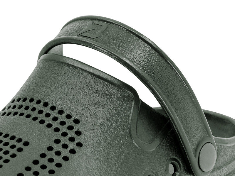 Dalším sofistikovaným prvkem jsou velké postranní otvory, jejichž prioritním úkolem je starat se o odvětrávání a celkovou vzdušnost v této obuvi. Záměrně nejsou navrženy ve výši podrážky, jak to bývá standardem, ale o něco výše. Právě tento detail hraje významnou roli během pobytu na břehu, či mělké vodě. Tím, že otvory jsou o něco vyšší nad vnitřní stélkou je téměř eliminováno nechtěné nabírání písku či kamínků mezi podrážku a chodilo. Vaše chodidla jsou tedy chráněny v maximální možné míře. Kromě těchto otvorů slouží k odvětrávání hustá perforace umístěna ve vrchní části. Ta je záměrně vytvarována na jedné straně do symbolu D z loga Delphin, na druhé vsuvce zase kraluje symbol O, jako počáteční písmeno názvu OCTO. Celkový dojem ještě zhodnocuje jemná struktura na povrchu pantoflí, která evokuje kůži chobotnice. Díky použitému EVA materiálu jsou mimořádně lehké, houževnaté a dokonce plovoucí. Samozřejmostí je u tohoto modelu poutko na fixaci paty (lidově nazývané i uzávěrka), které oceníte zejména v nerovné, či svahovitejšom terénu.