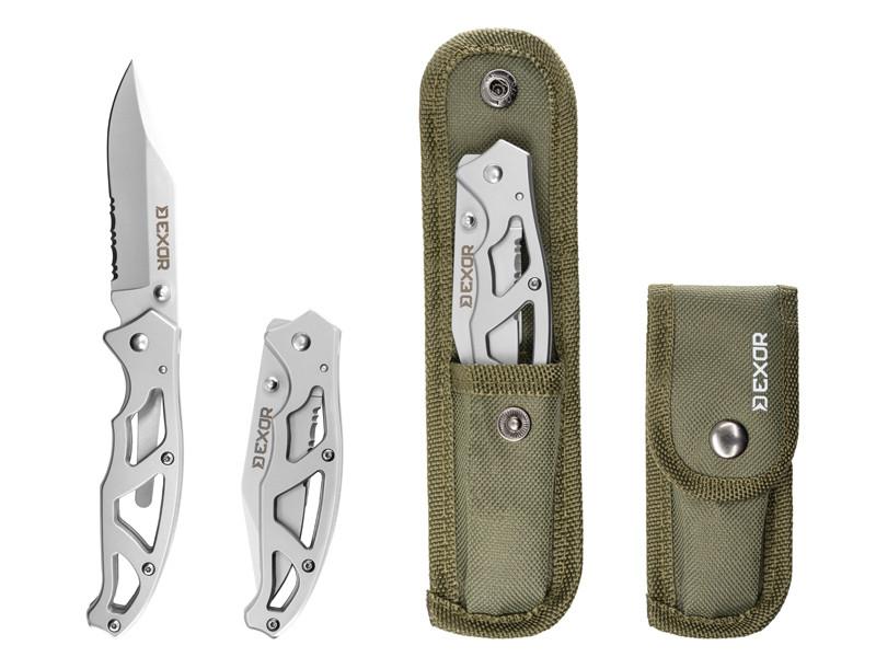 Čepel nože je vyrobena z kvalitní nerezavějící oceli a disponuje kombinovaným ostřím. Klasická hladká část je doplněna o zoubkované ostří, což činí z modelu EXOR univerzální nástroj schopný hravě proříznout i tužší materiály, lana nebo hrubší vlasce. Na čepeli se nachází praktický výčnělek pro rychlé a pohodlné otevírání jednou rukou.