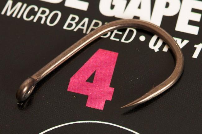 Wide Gape je skutečný skvost, který jako celek jeho skvělých součástí znamená jeden z nejlepších háčků všech dob. Ultra-ostrý dovnitř zahnutý hrot s mikroprotihrotem, široký oblouček se středně dlouhým ramínkem. Velikost očka byla zredukována a je pod úhlem 15ti stupňů vyhnut dovnitř. Opatřen hladkou povrchovou úpravou z teflonu. Tento háček se stává novodobou klasikou. Balení obsahuje 10 ks.