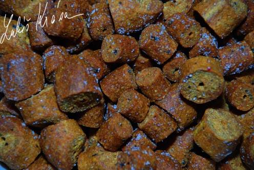 Průměry 12 a 17mm jsou s dírkou, aby se mohli použít i jako nástraha. V jednom kilogramovém pytlíku je mix pelet 12 a 17mm v poměru 1:1. Peleta průměru 12-17mm pod háčkem vydrží cca 5-6 hod v závislosti na teplotě vody. 4mm pelety jsou vhodné pro použití do PVA, na zakládání krmných koberců a jejich doba rozpadu je kratší.
