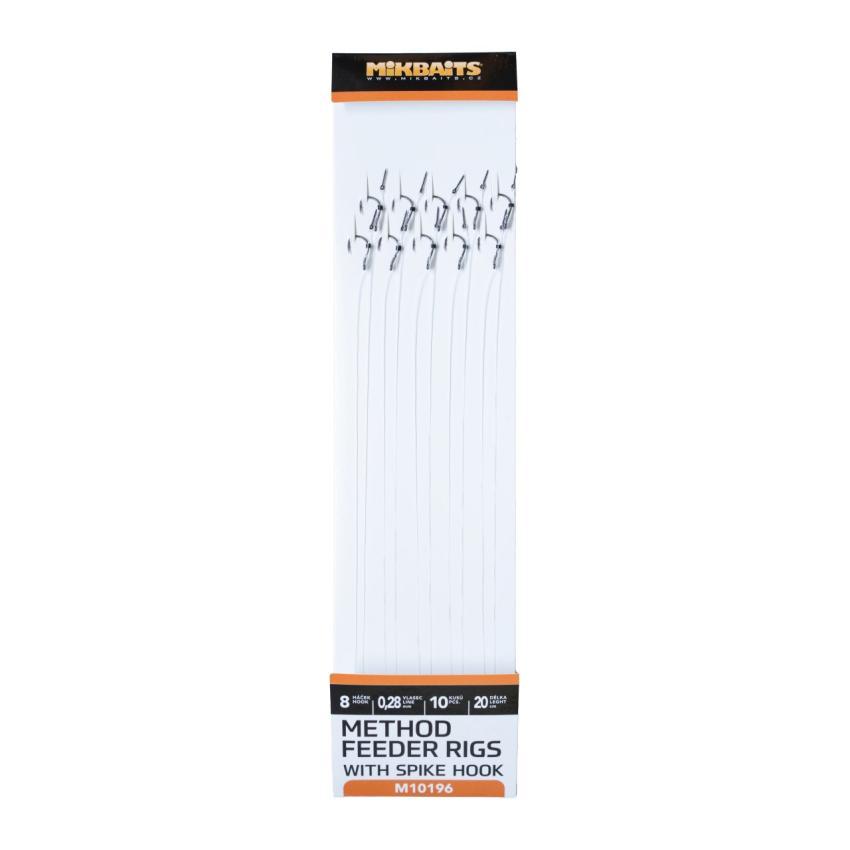 Method feeder návazce se zapichovacím hrotem jsou určené pro malé Pop-up, Wafters, Mini boilie či plovoucí i potápivou kukuřici. K výrobě jsme použili japonské feeder háčky a fluorocarbon. - velikost háčku: 6 - délka: 20cm - průměr vlasce/nosnost: 0,28mm - nástrahový trn: 6mm - balení: 10ks