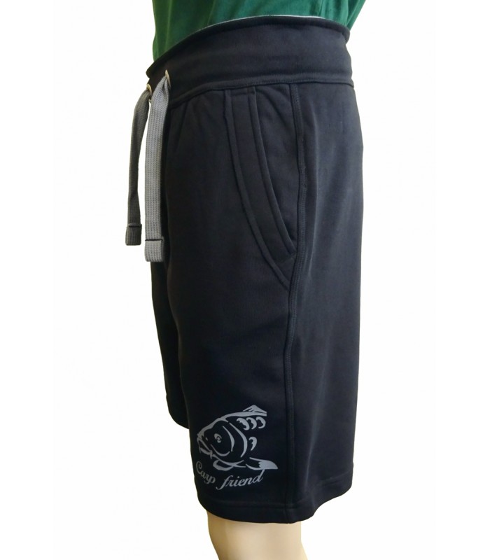 Kraťasy "R-SPEKT Carp friend black" jsou dalším zajímavým oděvním doplňkem v naší sekci pohodlného a volnočasového rybářského oblečení. Jak napovídá název, kraťasy jsou vyrobeny v praktické černé barvě z vysoce kvalitního teplákového úpletu, doplněné o jemné doplňky ve světle šedé barvě. Na bocích kraťasů najdeme dvě velké kapsy a dále pak vzadu také jednu hlubokou kapsu se zapínáním na kovový druk. Pas je řešen širokou kvalitní elastickou gumou spolu se širokými plochými šňůrkami v šedé barvě, které lze pohodlně zavázat a zajistit. Hlavní tiskový motiv se nachází vpředu na levé nohavici v podobě kombinace sloganu "Carp friend" a motivu kapra. Tento motiv je pak doplněn na zadní kapse dalším tiskem s logem "R-SPEKT limited edition".