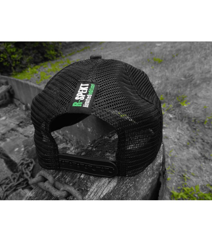 Nová prodyšná kšiltovka Mr.Carper s logem "R-SPEKT limited edition" je díky kombinaci černé barvy a kamuflážových designových doplňků určena především pro rybáře, kteří rádi splývají s přírodou a občas se potřebují při svých výpravách schovat v terénu. Díky vyztuženému čelu, pevnému a kvalitnímu kšiltu drží skvěle tvar, zapínání v zadní části je řešeno kvalitním stavitelným plastovým páskem.