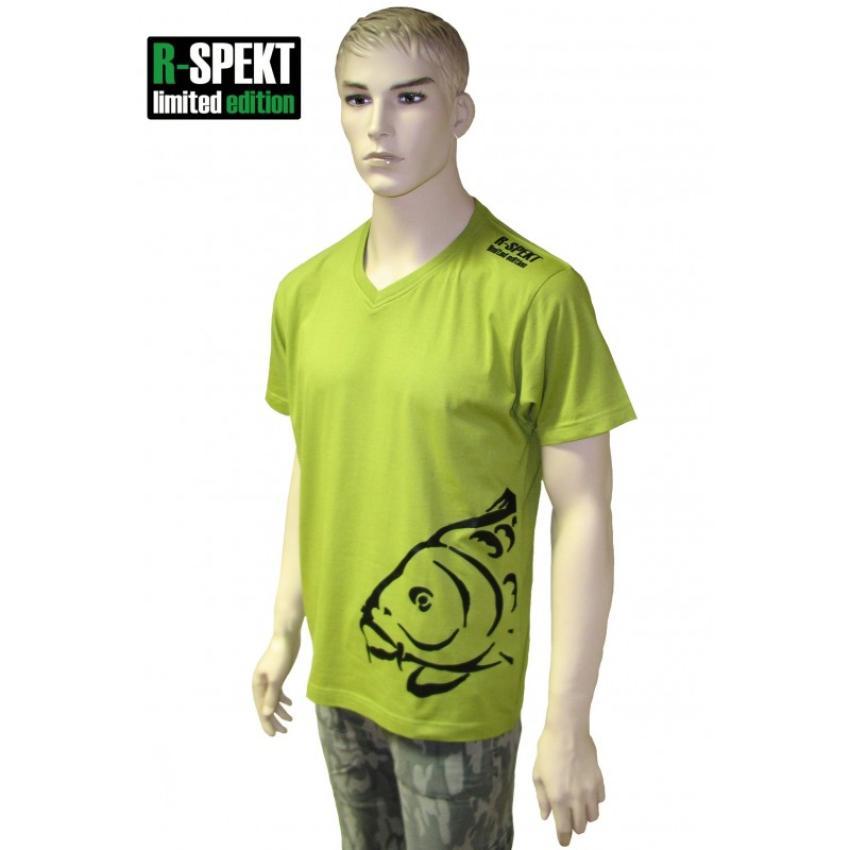 Značkové bavlněné tričko v netradiční olivové barvě a s V-éčkovým výstřihem pro ještě uvolněnější R-SPEKT styl. Na tričku je použit vysoce kvalitní černý transferový tisk v podobě motivu obřího kapra přes levou stranu, dále se znakem "R-SPEKT limited edition" na levém rameni. Vzadu za krkem se nachází kombinace nápisu "R-SPEKT limited edition" spolu s dalším motivem kapra.