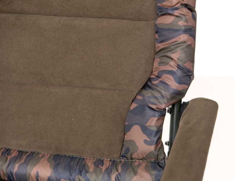 Okraj křesla je vyroben z polyesterové tkaniny RIP STOP Camo, disponující snadnou údržbou, vysokou životností a je rychleschnoucí. Na údržbu postačí jen vlhký hadřík.