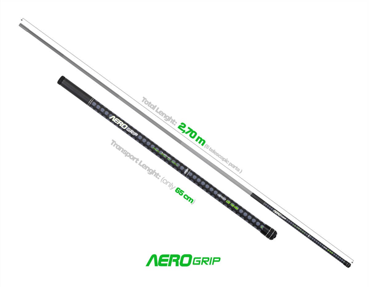 AeroGrip je teleskopická podběráková tyč navržená pro rybáře, kteří kladou důraz na skladnost, nízkou hmotnost a praktičnost. Vyrobena z kvalitního uhlíku, nabízí ideální kombinaci pevnosti a lehkosti pro pohodlnou manipulaci při každém podebírání. Hlavní předností je její extrémně kompaktní transportní délka, díky které se bez problémů vejde i do batohu nebo menší výbavy. Je tak perfektní volbou pro mobilní rybáře, kteří se často přesouvají a chtějí mít svou výbavu co nejlehčí a nejefektivnější. Teleskopická konstrukce umožňuje rychlé rozložení i složení, takže jste vždy připraveni k okamžité akci u vody. AeroGrip je ideální volbou pro všechny, kteří chtějí maximální mobilitu bez kompromisů v kvalitě a spolehlivosti.